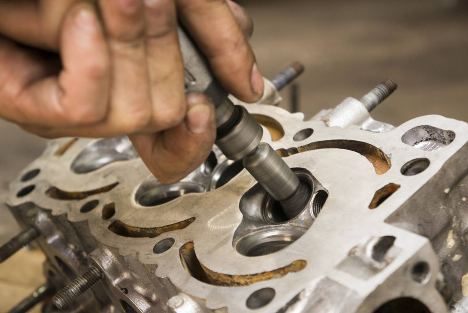 Substituição e ajuste de válvulas para garantir compressão e eficiência.